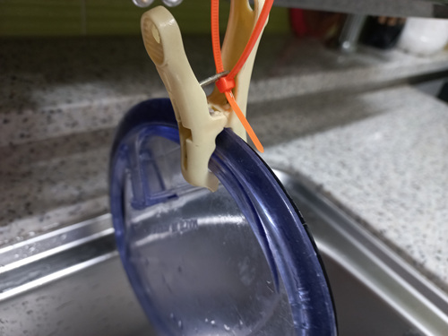 빨래집게와 케이블타이만 있으면 위생적이게 설거지를 할 수 있어요.