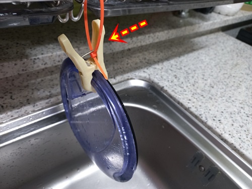 6. 사용하지 않은 수세미나 개수대 뚜껑은 빨래집게를 활용하자!