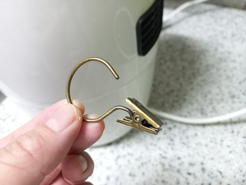 주방 한켠에 커튼 봉에 끼워 사용하려던 집게인데요. 여유분이 있어 전 이것을 활용했답니다.