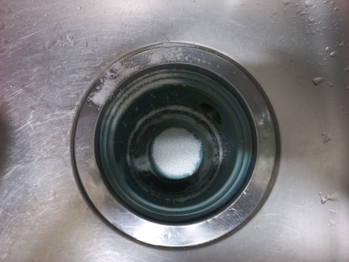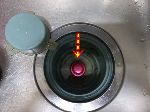 보통 물구멍을 막지 않고 과탄산소다를 넣어 청소하다 보면 뜨거운 물을 붓자마자 과탄산소다가 그냥 다 내려가 청소가 깨끗이 안 되는 단점이 있지요. 그 부분을 해결한 셈입니다.