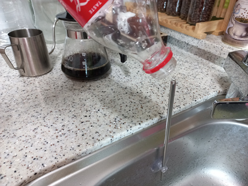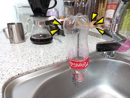 이렇게 페트병을 꽂아 두면 생각보다 빨리 물기가 제거됩니다.