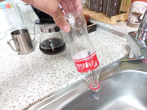 이렇게 페트병을 꽂아 두면 생각보다 빨리 물기가 제거됩니다.