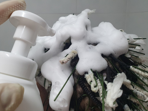 " 니 염색할때 이 통에 염색약 넣어서 사용하면 이렇게 거품이 나와서 괜찮겠는데..."