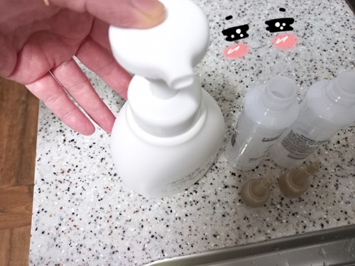 손세정제 통은 물론 펌프도 깨끗이 헹궈뒀습니다. 염색할때 이 빈통을 재사용하려구요.