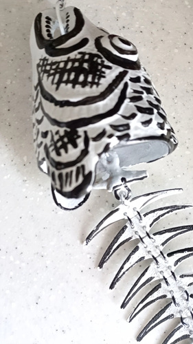 먼저 녹슬어 버린 소품을 깨끗이 닦고 그 다음 흰색 페인트로 칠했다. 마지막으로 2d 느낌이 나게 일일이 디테일하게 그려 넣었더니 마치 종이위에 그려진 느낌이다.