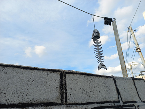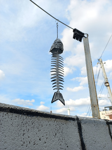 바로 빨래줄이다. 여기에 걸어 두니 바람이 불때마다 소리가 난다. 사찰에서 보던 처마밑 풍경처럼 소리도 청아하다.