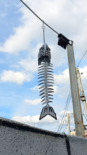 바로 빨래줄이다. 여기에 걸어 두니 바람이 불때마다 소리가 난다. 사찰에서 보던 처마밑 풍경처럼 소리도 청아하다.