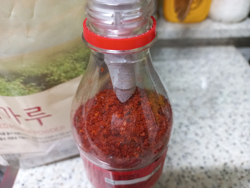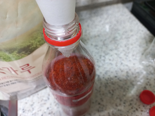 페트병에 고추가루를 넣어 보관하면 결론적으로 곰팡이 방지 및 요리할때 고추가루가 필요하면 톡톡 원하는 양을 넣기 좋답니다. ^^