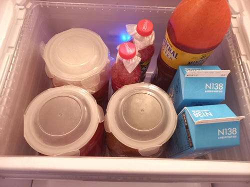 고추가루가 많다면 이 상태로 냉동실에 두고 필요시 꺼내 드시면 되고요. 한 달이내 드실거면 이 상태로 냉장실에 넣어두고 필요할때마다 사용하시면 됩니다.