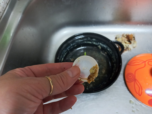 요.... 페트병 뚜껑만 있으면 뚝배기에 눌어 붙은 달걀을 쉽게 제거할 수 있습니다.