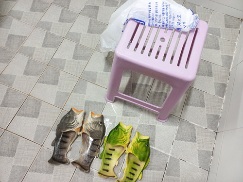 대신 욕실 슬리퍼를 담궈 놓았던 물은 꼬질꼬질해져 있지요. 둥둥 뜨는 이물질.............더럽.....ㅡㅡ;;;;;