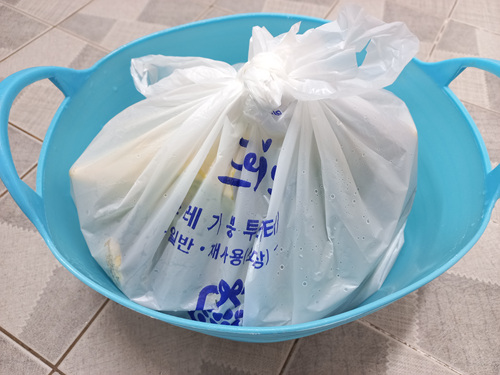 쓰레기봉투에 쓰레기 담기 전에 욕실 슬리퍼 세척 한 번하고 담아도 되겠죠~~