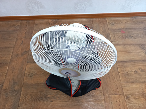 더스트백의 지퍼를 다 열고 선풍기를 세워서 넣은 뒤....