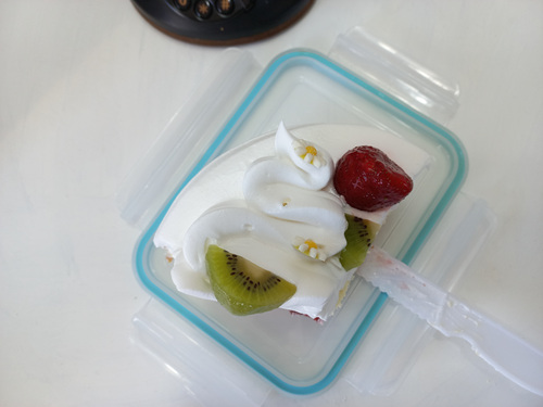뜨아.................................. 락앤락 통이 조금 작아서 생크림이 조금 찌그러졌어요. 뭐...... 이 정도면 그냥 빵으로 닦아서 먹으면 되지만요. 혹시나 저처럼 넣으시는 분들은 락앤락 통을 넉넉한 것으로 준비해 주세요. 전 너무 딱 맞는 것으로 담아서 살짝 당황했어요. ^^;;;;;