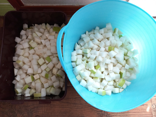 깍두기를 담글거라니까 어찌나 이쁘게 잘 썰어 주는지......나 같으면 대충 썰었을텐데 하여간 꼼꼼한 남편입니다.