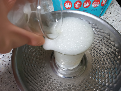 설거지를 하려는데 주방세제가 똑 떨어졌다면 저처럼 베이킹소다, 물, 식초를 이용해 세제를 만들어 사용해 보세요. 생각외로 정말 깔끔하게 설거지를 할 수 있을겁니다. 이가 없으면 잇몸이라는 옛말도 있잖아요. 설거지를 산더미처럼 쌓아 놓지 말고 이제 다양한 방법으로 설거지를 해 보아요. ^^