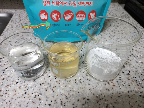 이렇게 만든 것은 수세미에 묻혀 하나씩 설거지를 하면 됩니다.