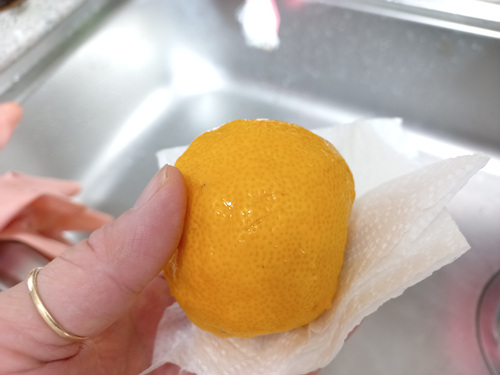 베이킹소다로 씻으면 유자겉에 묻은 이물질이 깔끔하게 없어지고 껍질째 먹어도 안심이 됩니다.