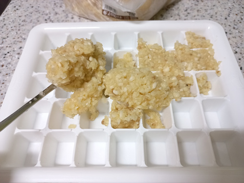 여기서 키 포인트는 마늘을 꾹꾹 눌러 넣어야 나중에 얼었을때 모양대로 꺼내기 좋아요.