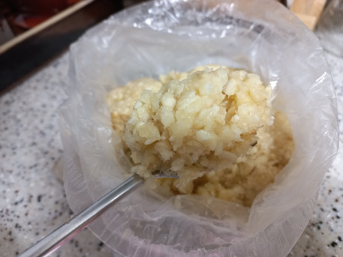 마늘 요리가 많이 들어가는 한식에는 간마늘이 필수입니다. 예전 같으면 마늘을 일일이 껍질을 벗기고 빻고 해야 하는데 지금은 요리를 빨리하기 위해선 간마늘을 미리 준비해 놓으면 정말 편하지요. 동네 마트에서는 매일 오후에 마늘을 일일이 기계에 넣어 갈고 있어서 믿고 먹을 수 있어 간마늘이 떨어질 즈음엔 한 봉지씩 사오곤 합니다.