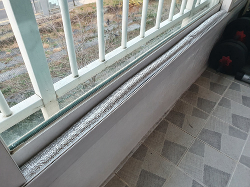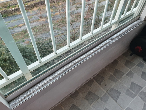바로 바람 쑹쑹 들어오는 베란다 창틀 사이에 말이죠. 이중창이 아니다 보니 은근히 창틀 사이로 찬바람이 많이 들어와 난방비가 줄줄 새는 느낌도 들더라고요.