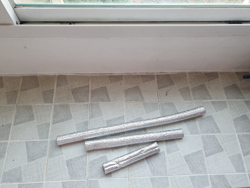 수도꼭지 동파 방지용 커버가 남았다면 저처럼 창틀 틈새 바람 방지하는 대용으로 사용해 보세요. 대박이라는 말이 절로 나올 정도로 찬바람을 완벽하게 막아줄겁니다. ^^