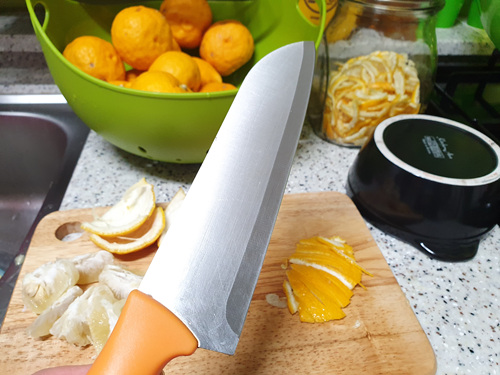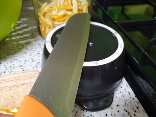 유자가 싸길래 몇 봉지를 구입해 와서 유자청을 담기로 했습니다. 껍질이 두터운 탓일까요. 몇 개의 유자를 썰다 보니 칼이 많이 무뎌진 느낌이 들었습니다. 그래서 간단하게 칼을 갈아 보기로 했지요.