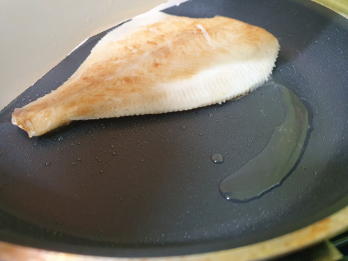 기름이 튀면 종이호일에 기름이 묻은 상태에서 다시 후라이팬으로 흘러 생선이 눅눅하지 않고 고소하게 구워 주기도 합니다.