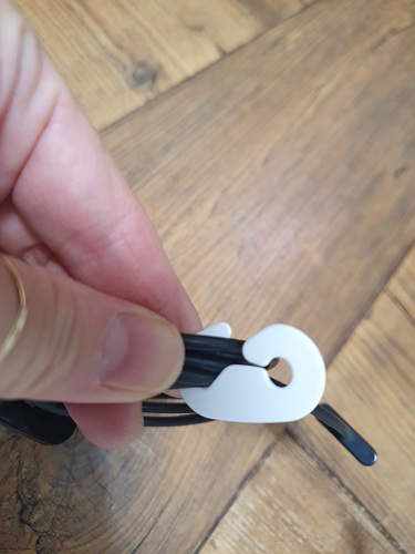 1회용 마스크를 구입하다 보면 마스크걸이 하나씩 들어 있는데요. 이때 마스크걸이를 사용하지 않을때 모아 두었다가 각종 가전제품 줄을 정리할때 사용하면 편리합니다.