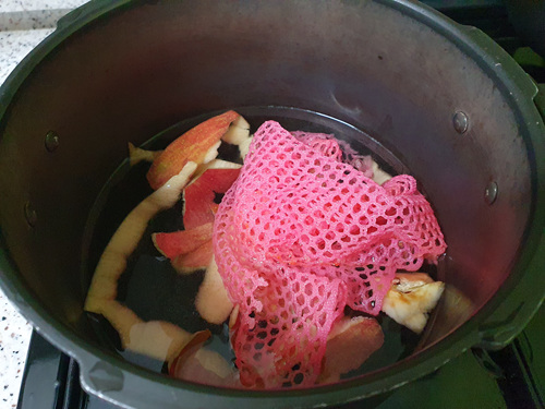 어짜피 물을 넣고 팔팔 끓일거면 수세미도 넣어 주세요.