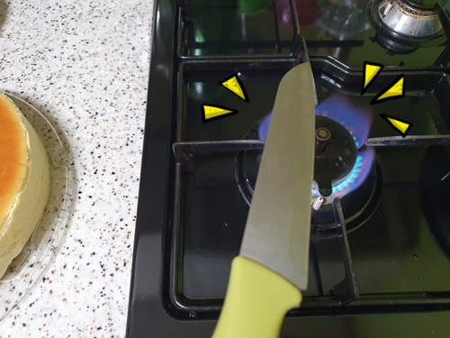 그런 이유로 케이크를 자를때는 꼭 가스렌지 불에 한 번 칼을 약간 달군 뒤 케이크를 잘라 보세요.