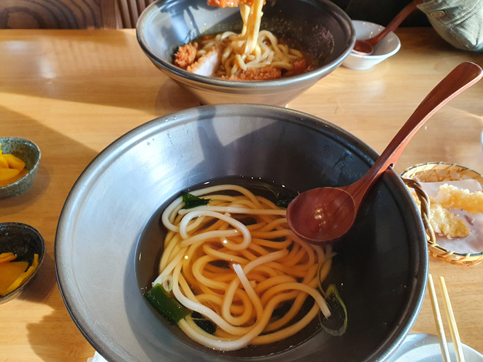 먹다 보니 돈까스만 먹어도 괜찮네! 할 정도로 돈까스맛집에서 맛보는 그런 맛이었습니다. 단, 아쉽다면 우동에 들어간 카레랑 섞어 먹으니 우동만 따로 노는 듯한 맛이었습니다.