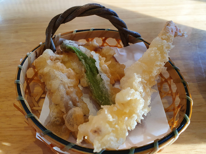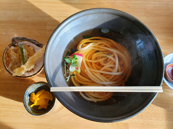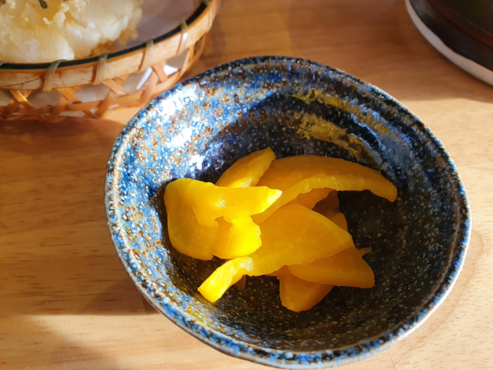 튀김은 새우, 고구마, 땡초등이 나왔고 소스는 따로 없고요 그냥 우동국물에 넣어서 먹는 방식입니다. 그래도 튀김인데 간장소스 같은게 있었으면 더 좋았을걸 하는 생각도 들었어요. 바삭한 튀김을 다시 우동국물에 적시는건 좀 .....