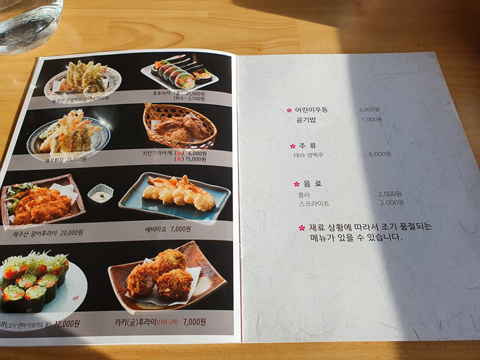 우동 가격은 제주도 물가에 비하면 그리 비싸지 않아 부담없이 고를 수 있었던 것 같습니다. 자세한 것은 메뉴판 참고하시길...