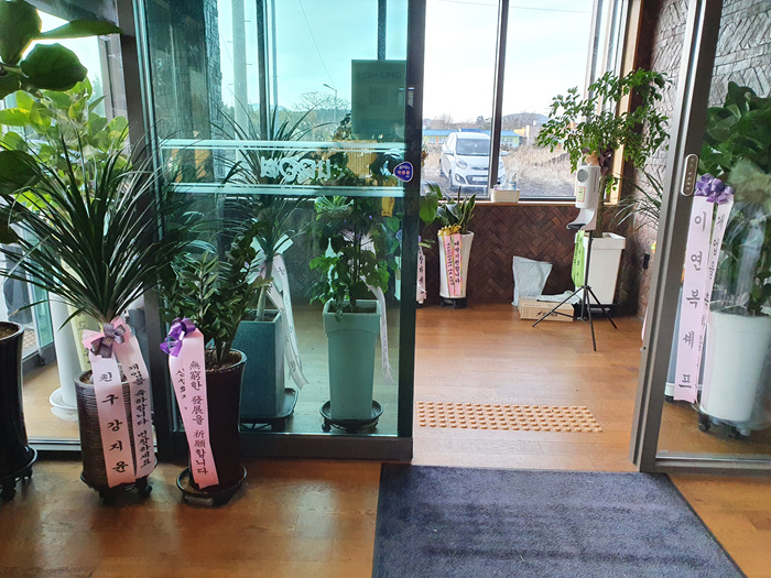 방송에 많이 나와서일까요. 입구에 이름만 들어도 아는 연예인들의 화환이 꽤 많이 보였어요.
