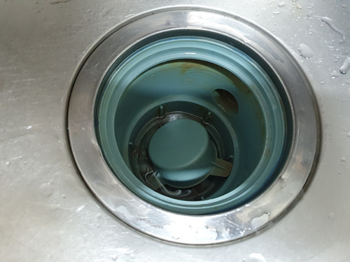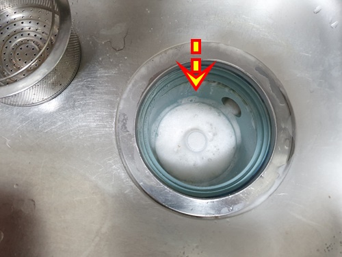 배수구 통 안에 있는 것을 다 분리해 준 뒤 크기에 맞게 잘라 둔 페트병을 배수구 물 내려가는 곳에 꽉 끼웁니다.