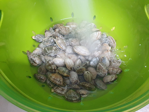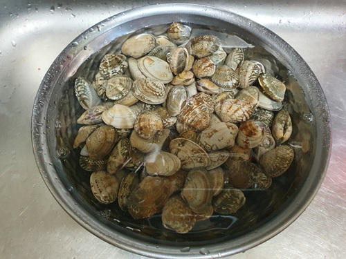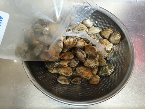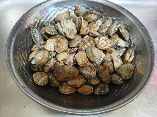 그리고 볼에 바지락을 담아 줍니다.
