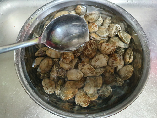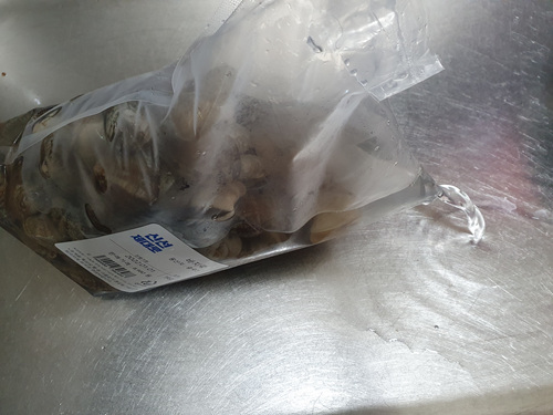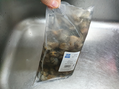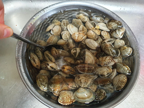 식소 한 숟가락 넣은 바지락을 어둡게 한 뒤 30분 기다려 봤습니다.