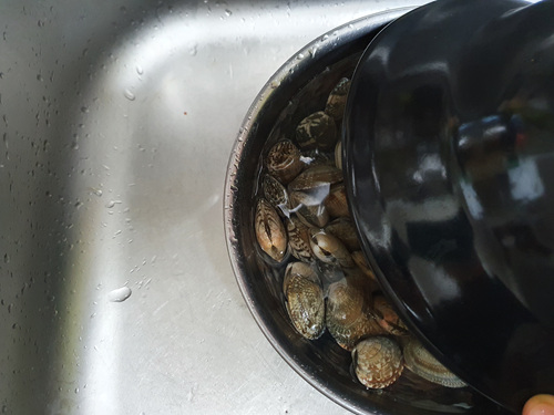30분 후....... 생각보다 바지락 해감이 잘 되지 않아 다음 방법으로 해 보기로 했습니다.