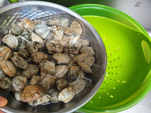 바지락 해감을 하는데 2가지 방법을 해 봤는데요. 개인적으로 소금물이 제일 잘 되는 것 같았습니다. 그리고 무엇보다도 저만의 방식인 채에 바지락을 받친 후 해감을 하면 헹굴때도 정말 깔끔하게 된다는 사실입니다. 바지락으로 각종 요리를 하신다면 저처럼 해감은 채에 받쳐서 해 보시길요. ^^
