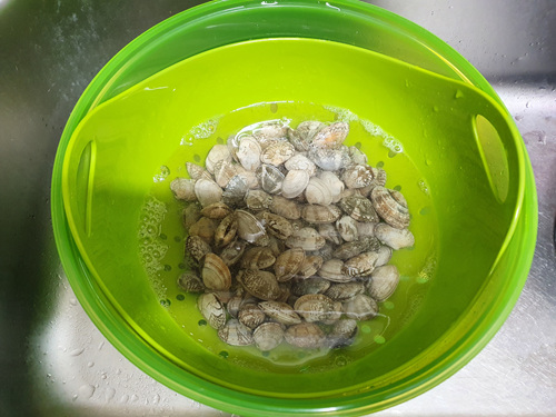 칼국수를 해 먹기 위해 바지락을 사왔습니다. 제일 먼저 할 일은 해감하는 일이겠죠.