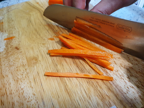 다른 재료도 준비할 것이 많고 해서 남편에게 당근 채 좀 썰어 달라고 했네요. 그랬더니...