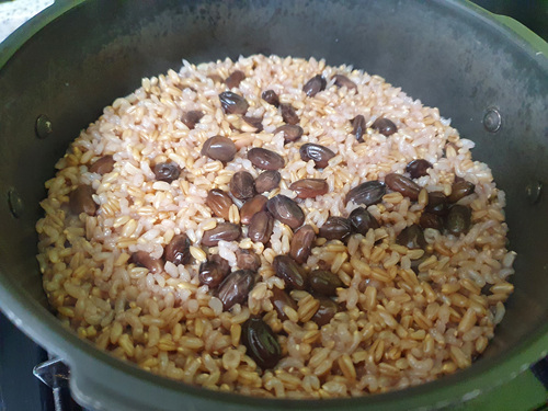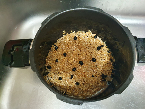이렇게 두번 압력밥솥에 하면 딱딱한 콩은 물론 현미, 귀리도 고슬하니 다 익어 정말 맛있는 잡곡밥이 됩니다.