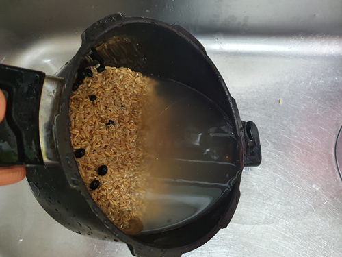 이렇게 두번 압력밥솥에 하면 딱딱한 콩은 물론 현미, 귀리도 고슬하니 다 익어 정말 맛있는 잡곡밥이 됩니다.