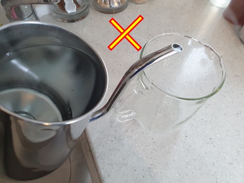 [ 유리에 뜨거운 물 조심하게 붓는 법 ]
