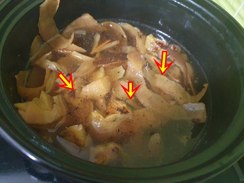사과껍질과 물을 넣고