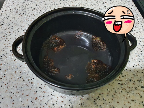 홀라당 태워버린 냄비입니다.