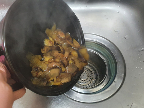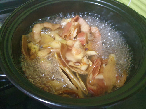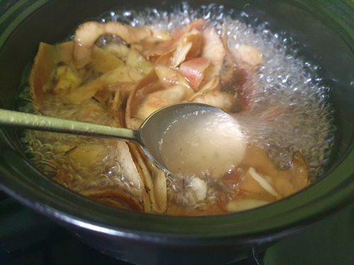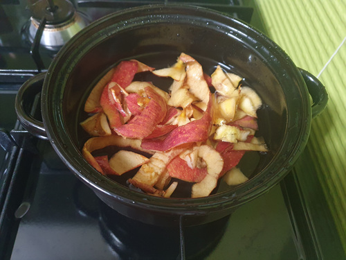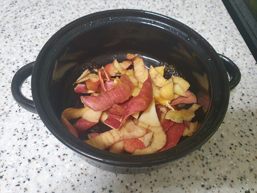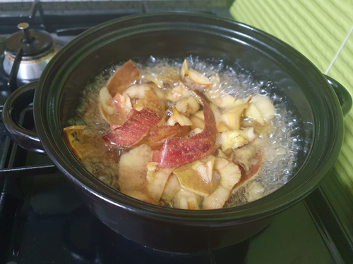 사과껍질과 물을 넣고