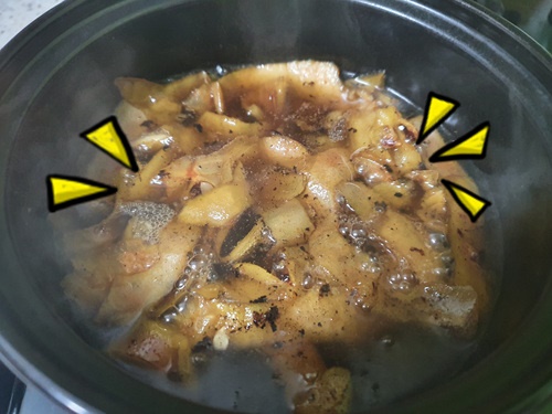 냄비에 눌어 붙은 것들이 일어나기 시작합니다.
