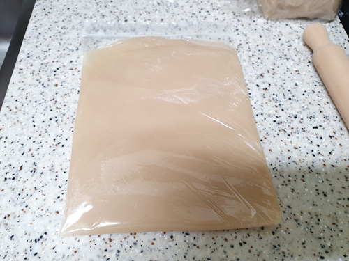 이렇게 밀대로 얇게 밀어주면